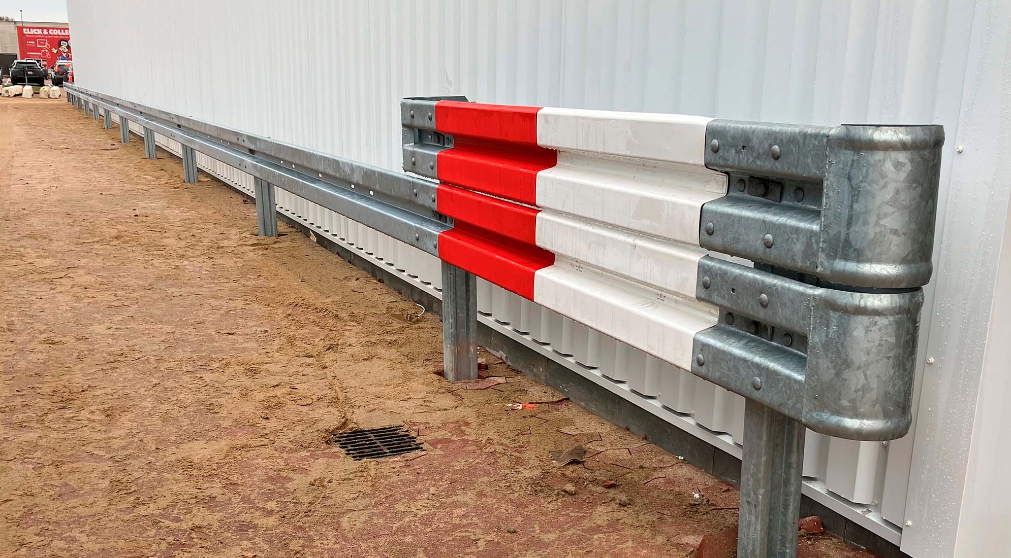 I projektet valdes vårt H1 W3-system – en beprövad lösning som normalt används på vägar och motorvägar. Systemet erbjuder dokumenterad styrka och kontrollerad deformation, vilket gör det särskilt lämpligt som byggnadsskydd vid portar och fasader där lastbilar dagligen passerar nära byggnaden.