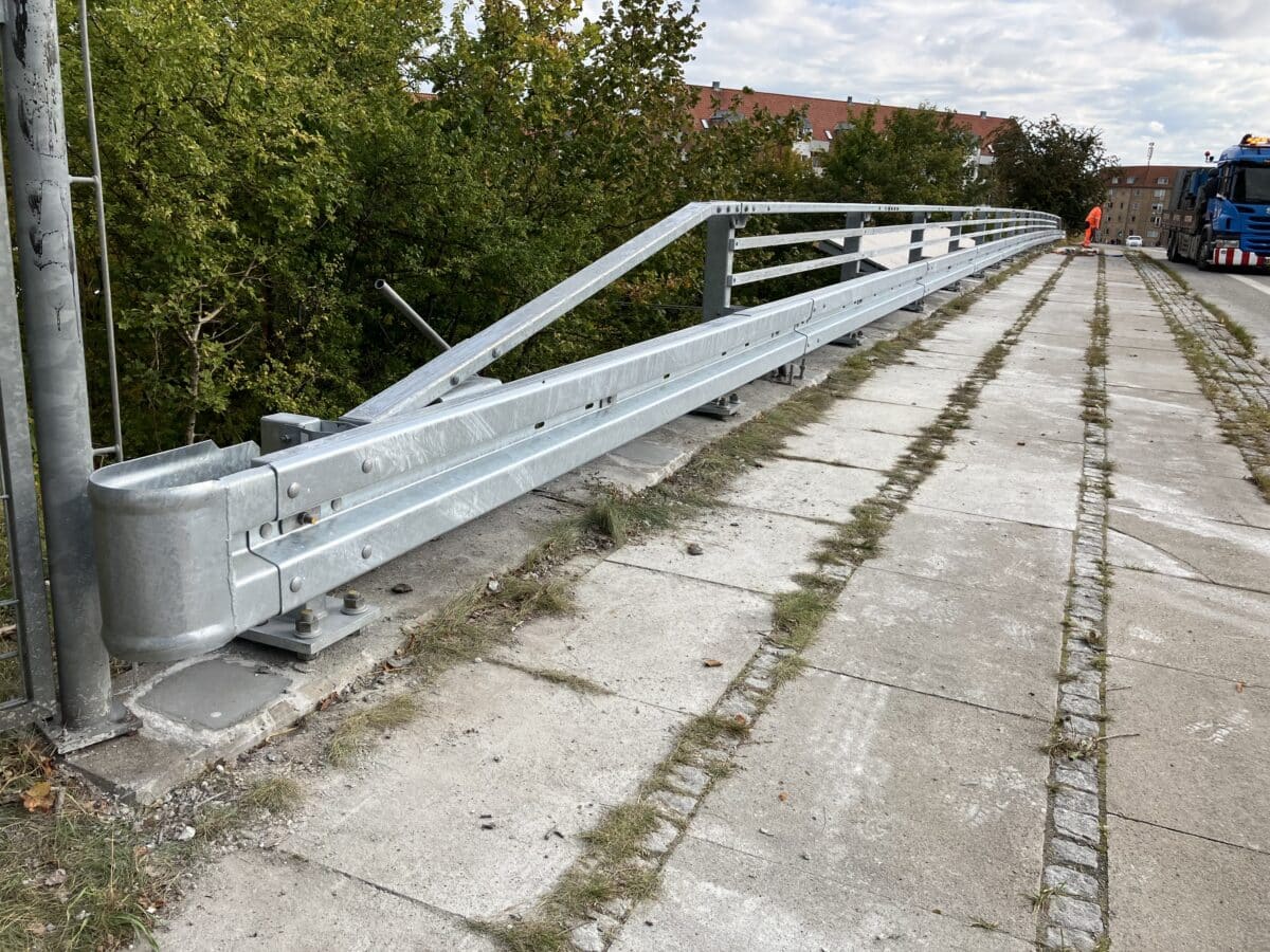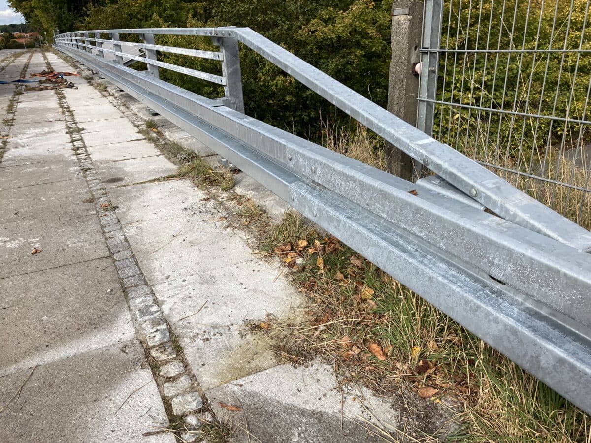 Totalt levererades och monterades 2 x 48 meter H2W3-broräcken, men innan detta kunde genomföras behövde både gamla bultgrupper avlägsnas och kantbalken repareras. Samtidigt utfördes arbetet i direkt närhet till järnvägen, vilket innebar att allt arbete måste planeras med extra fokus på säkerhet och tillträdesförhållanden.