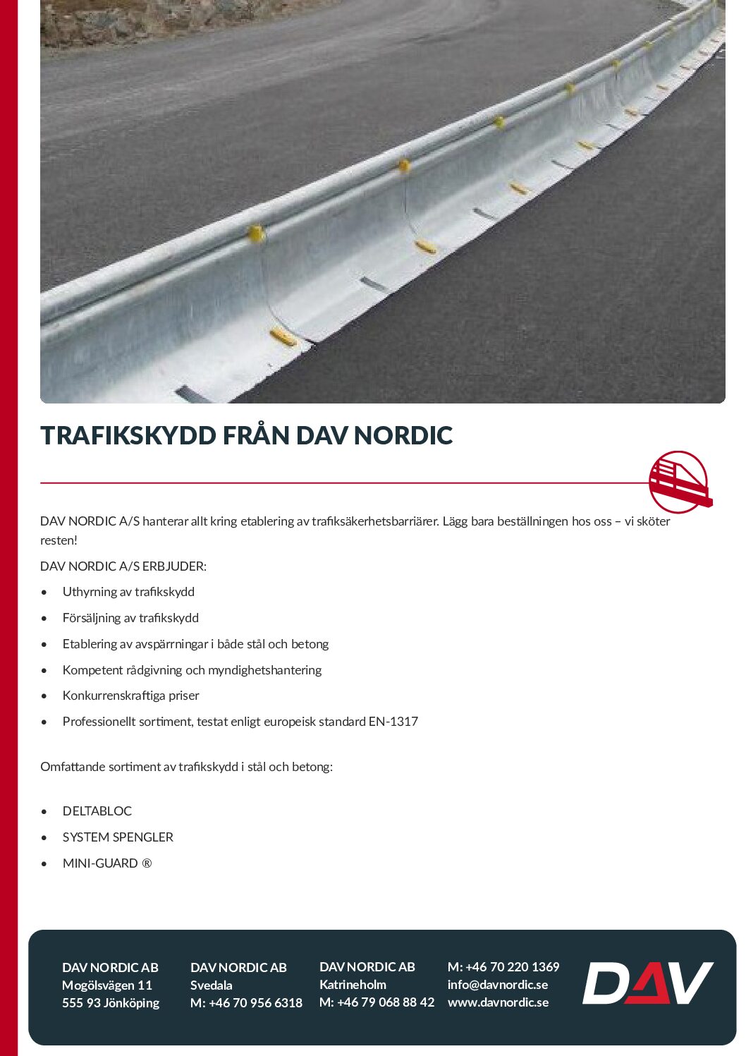 Trafikbutiken och DAV NORDIC har vunnit en stor order för uthyrning av en ny typ av skyddsbarriär på Riksväg 50 norr om Örebro. Skyddsbarriären är…